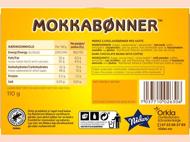 Nidar Mocca beans 110 grams (Mokkabønner)