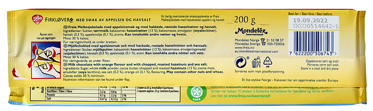 Freia Milk chocolate with hazelnuts & oranges 200 gram (Firkløver med appelsinsmak)
