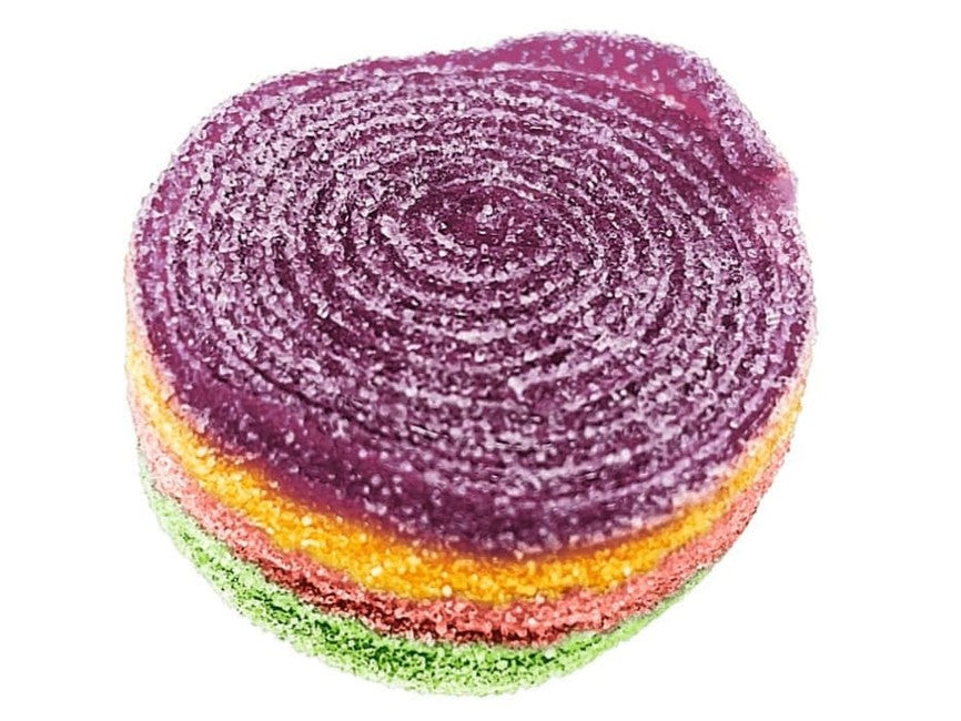 Soft jelly candy, Sour rainbow roll. No need to choose one flavor over another - this roll has it all! Pucker up for a sweet and tangy, sour confectionary sensation!