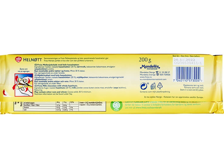 The composition of Freia Milk chocolate and all the specially roasted hazelnuts makes Freia Helnøtt the perfect trip buddy, or as a treat when you are going to enjoy yourself.