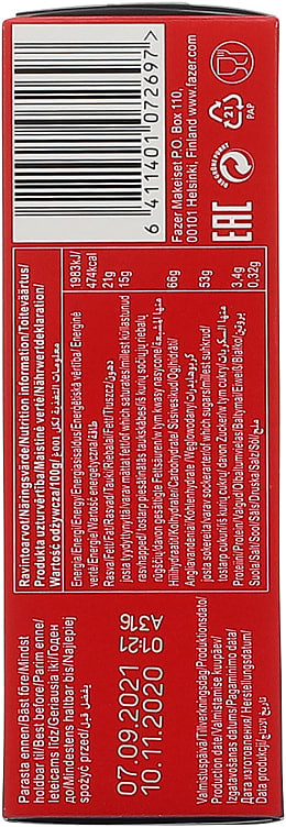 Glucose syrup, sugar, vegetable fat (palm), whole milk powder/sweet milk powder/dry milk, cocoa butter, whey powder (from milk)/whey powder (from milk)/whey powder (from milk), cocoa mass, skimmed milk powder/skim milk powder, salt, emulsifier (soya lecithin), flavourings. (cola/caramel, vanillin).