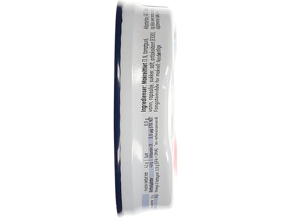 Mackerel fillet (scomber scombrus) (60%), tomato puree, water, rapeseed oil, sugar, salt, antioxidant: citric acid.