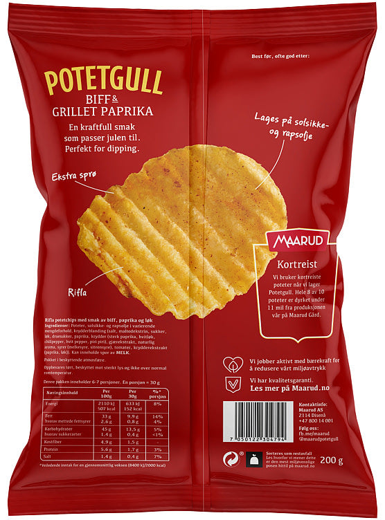 Savor the bold flavors of Maarud Steak & Grilled Peppers 200g, where crispy potato chips are packed with the rich taste of tender beef and the smoky sweetness of grilled peppers. Each crunchy bite offers a playful twist on classic savory snacks, perfect for adding a flavorful kick to your snack time or party spread. Let these chips bring a fun and tasty flair to your day, making every munch a delicious adventure!
